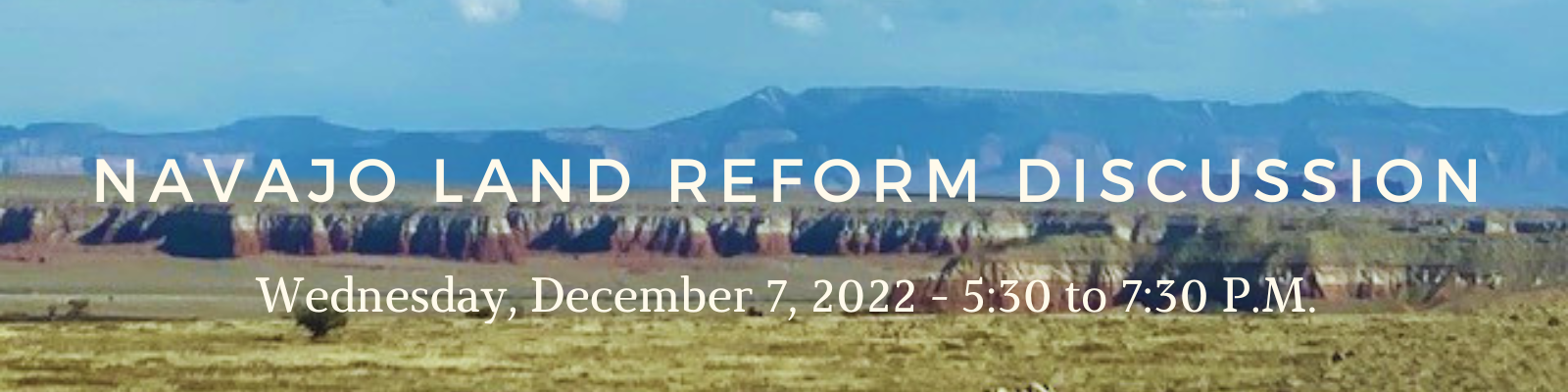 We are grateful for the major support for our Navajo Land Reform Community Conversation on December 7, 2022. We are grateful for our moderators and panelists: